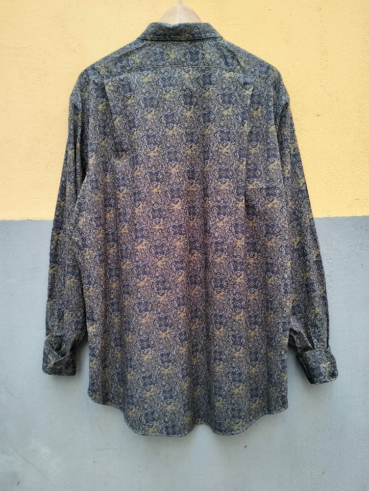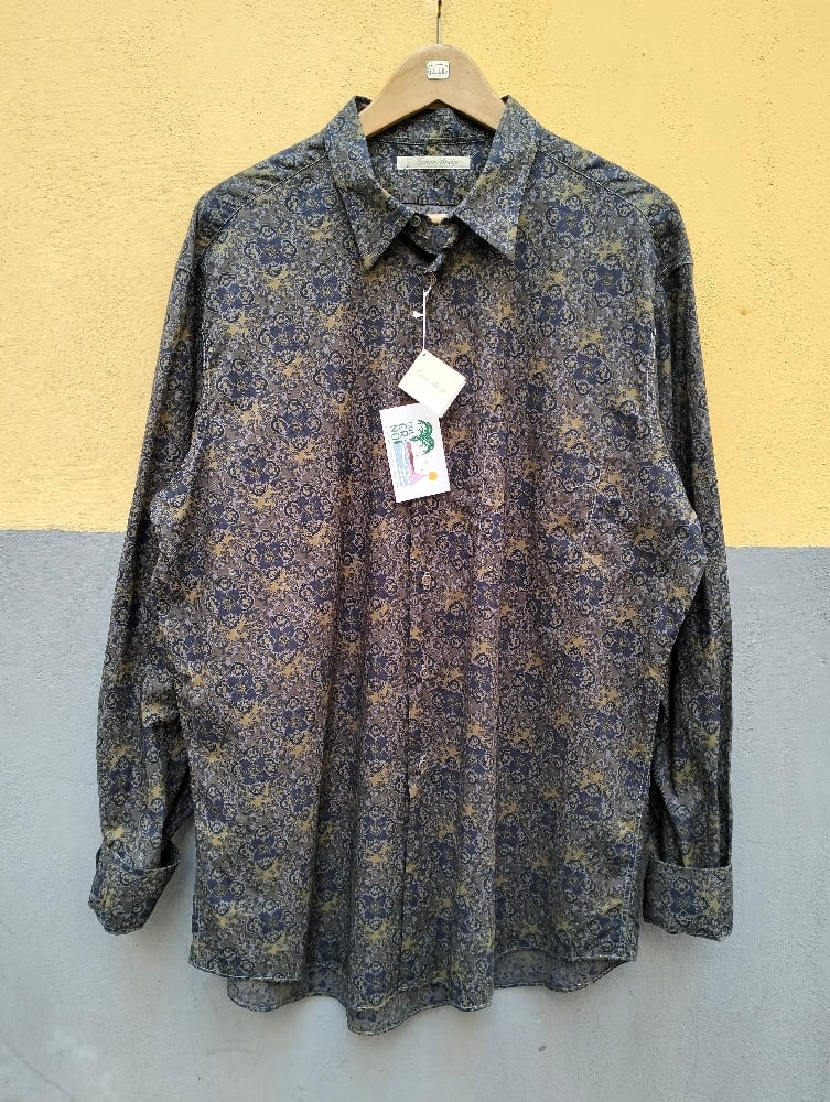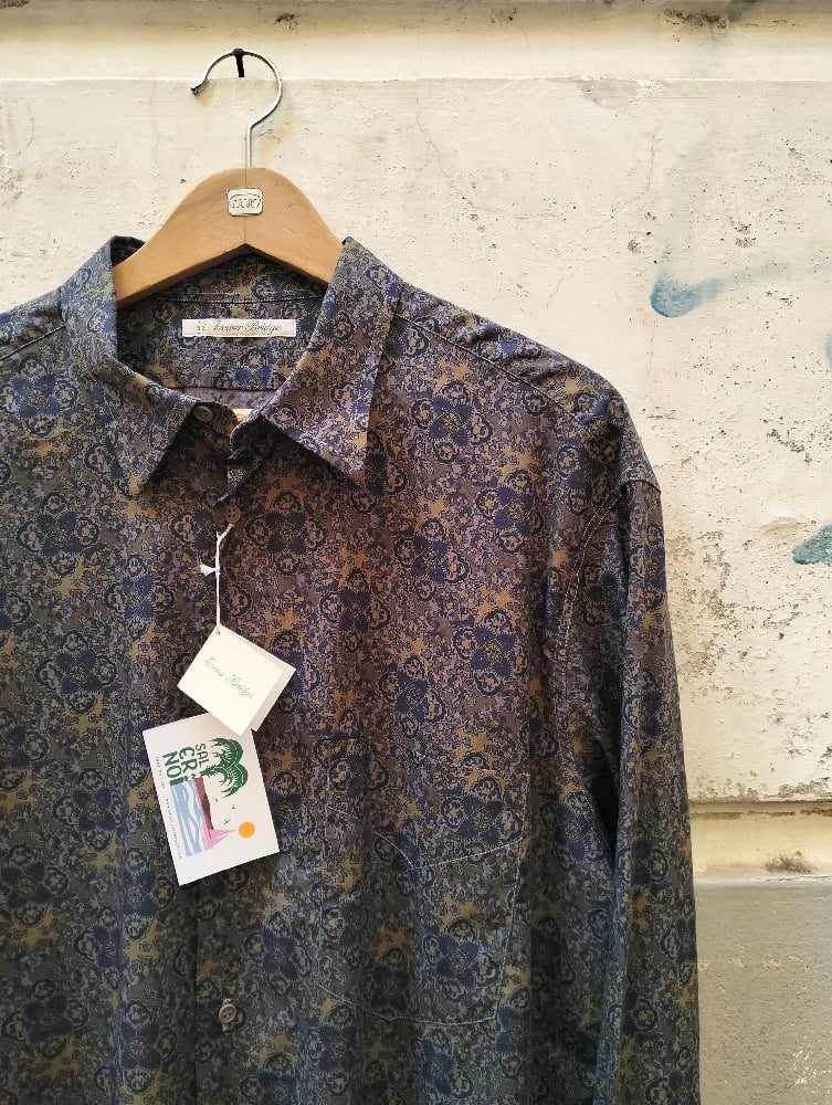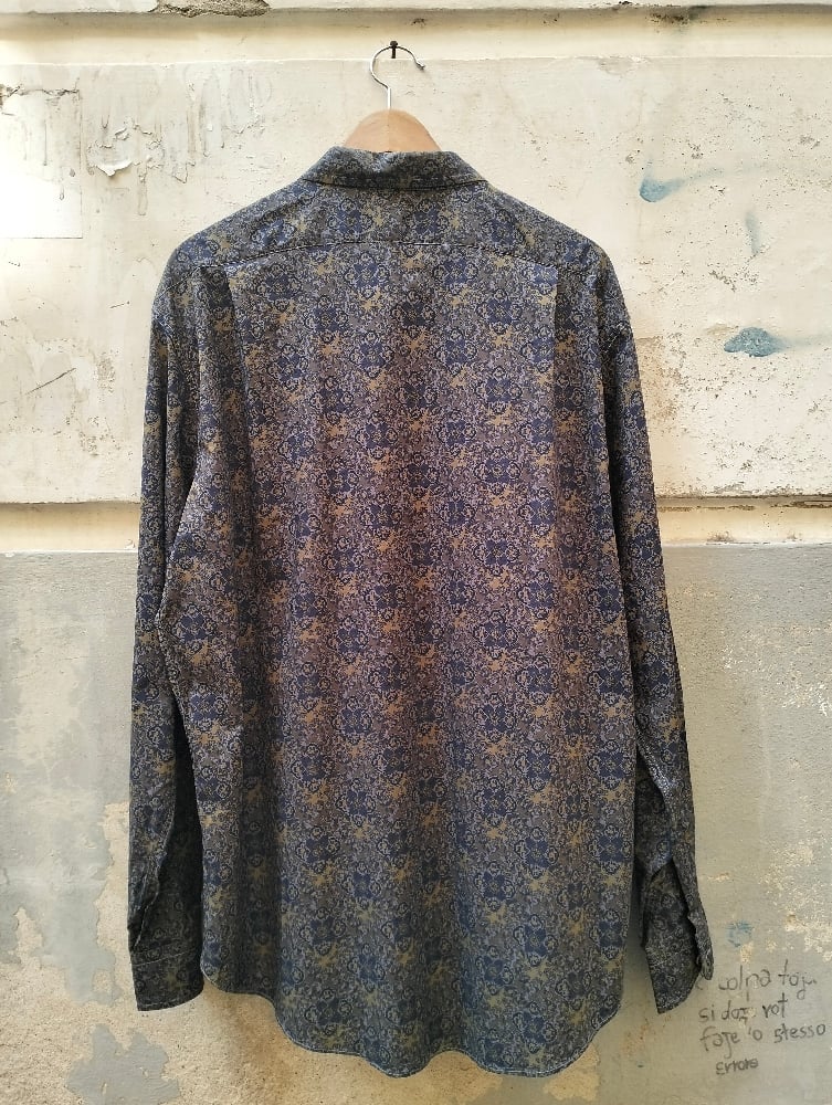 Camicia ancora cartellinata, Tower Bridge, made in Italy. Micro fantasia nei toni del vedere militare e del blu. Taschino sul petto, 100% cotone, taglia 17/43 di seguito trovate le misure in cm: