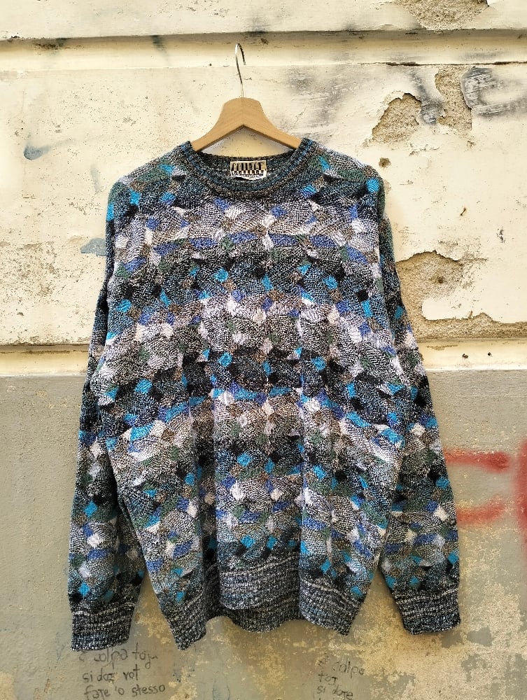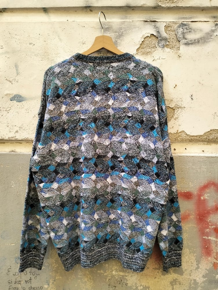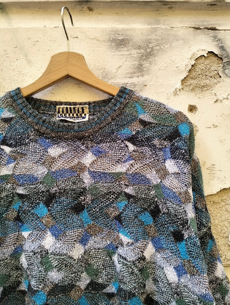 Maglioncino College by Marcazzani, made in Italy, fantasia geometrica che ricorda le fantasie Missoni. Taglia indicata 54, non è più leggibile l'etichetta con la composizione tessuto me è misto cotone.