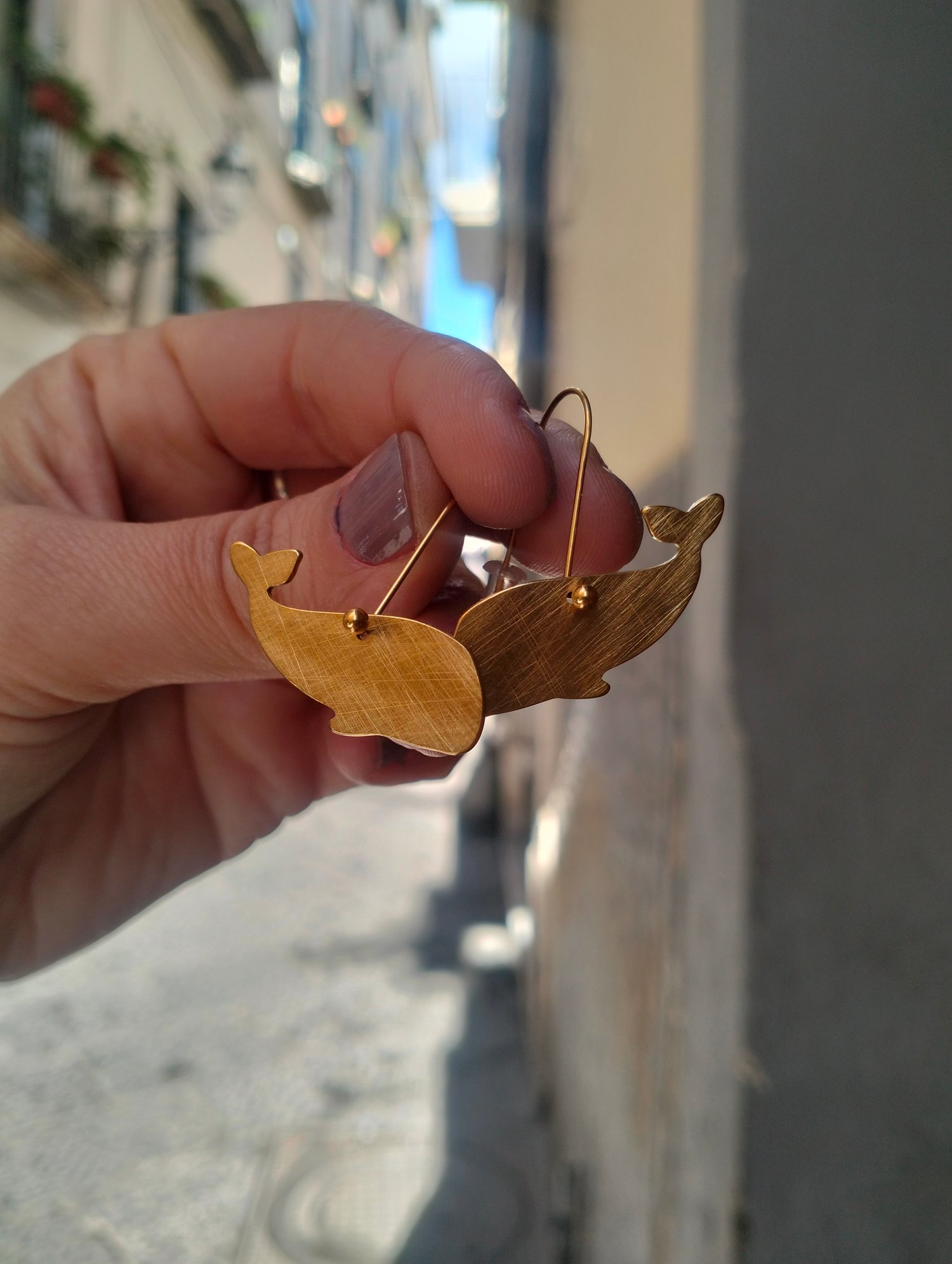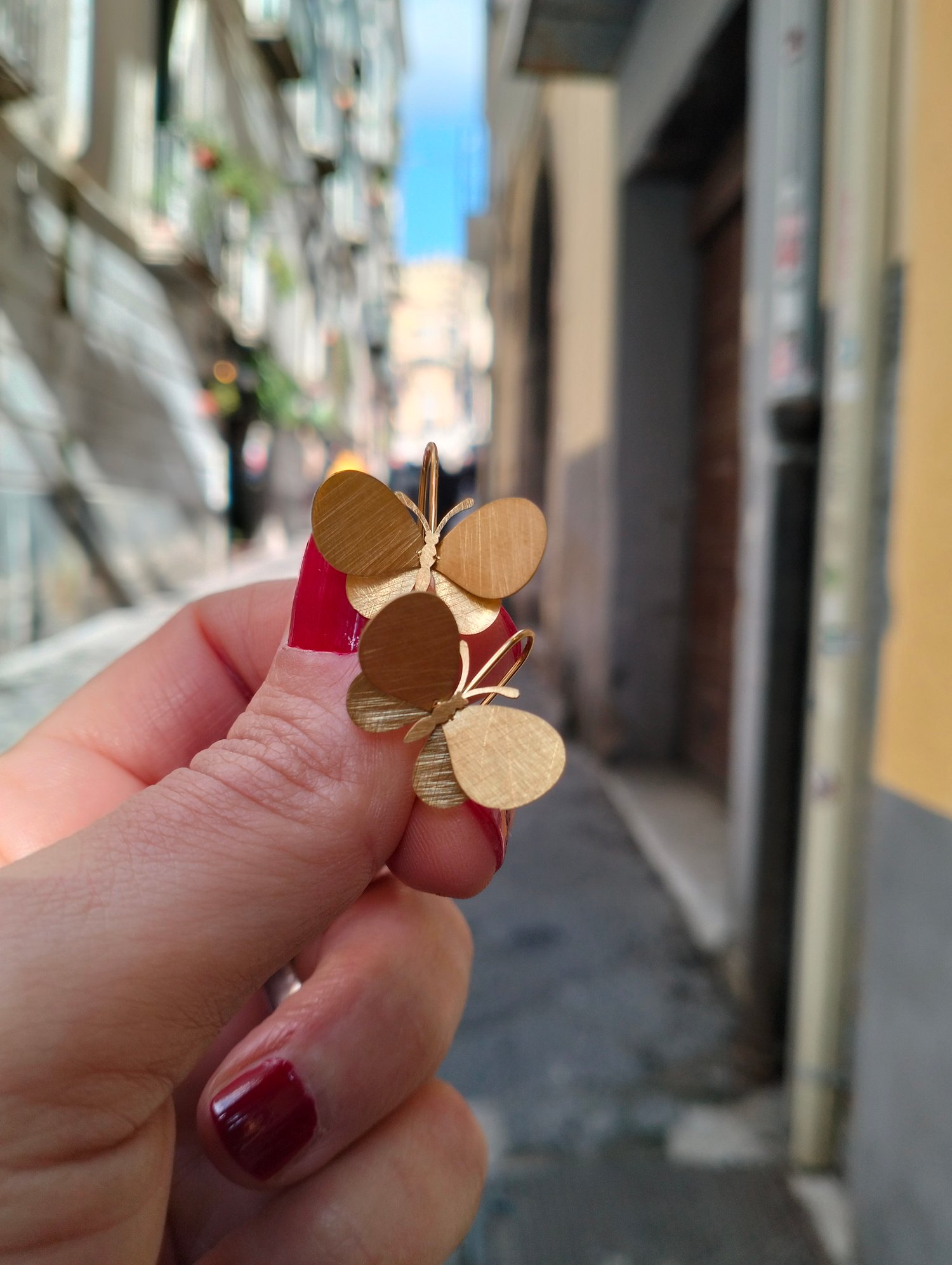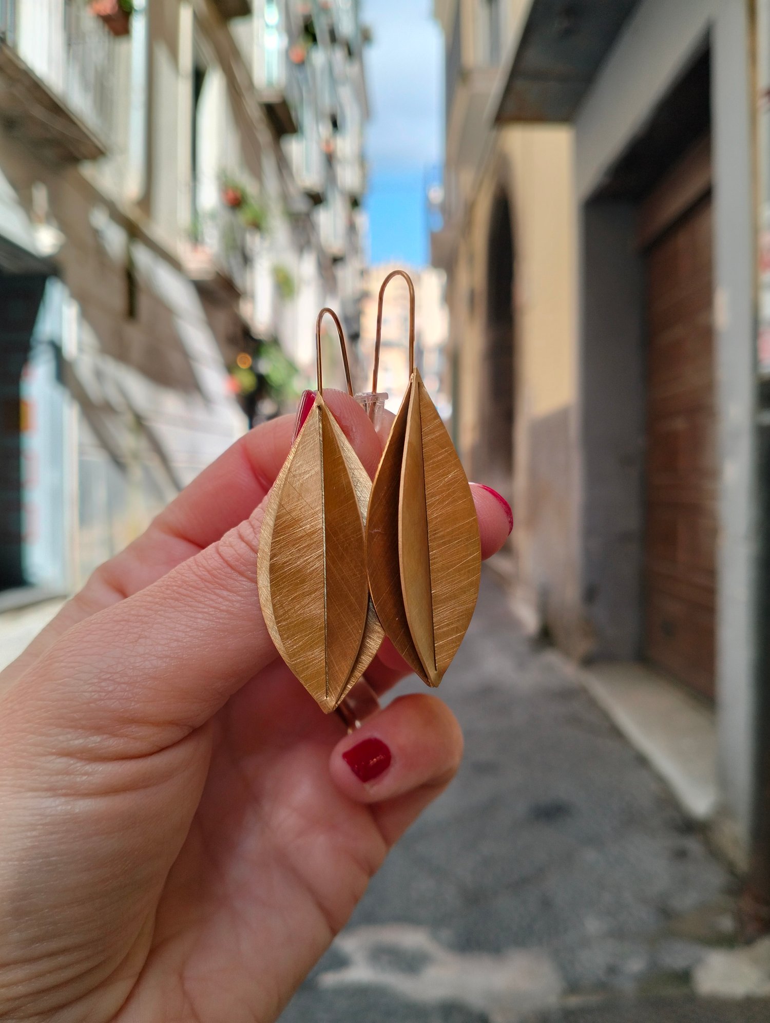 Orecchini super leggeri ma si grande effetto. In acciaio con galvanica colore oro, gancio ad amo e gommino da inserire per evitare che possano sfilarsi.